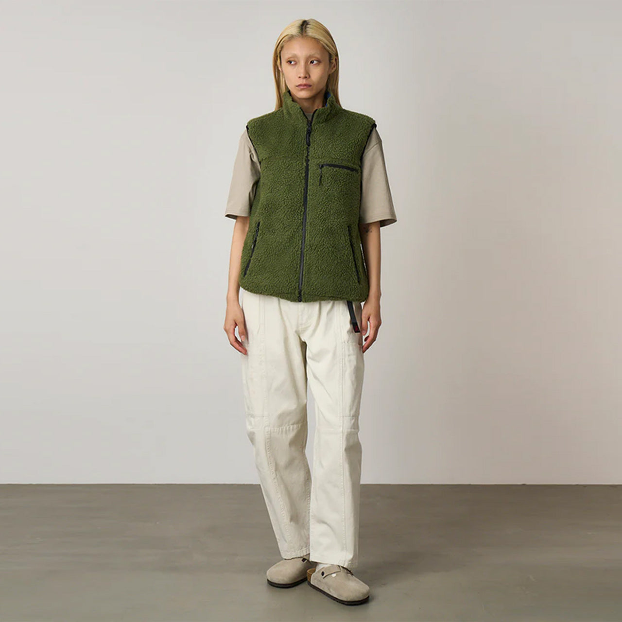 Gramicci リバーシブル シェルパ ベストは、“フリースの心地よさ”と“リップストップの実用性”のどちらを選ぶか迷う人にこそ向く一着です。デザインは、本当に優れた発想と見なされていた1980年代のアウトドアギアに着想を得ています。片面は厚手で毛足の長いシェルパフリースを使い、まるで羊に抱かれたような暖かさを。もう片面は高密度リップストップナイロンで実用性を確保します。どちらの面を着ても使えるよう両側にジッパーポケットを配置。ここまで実用的な2Way仕様はなかなかありません。