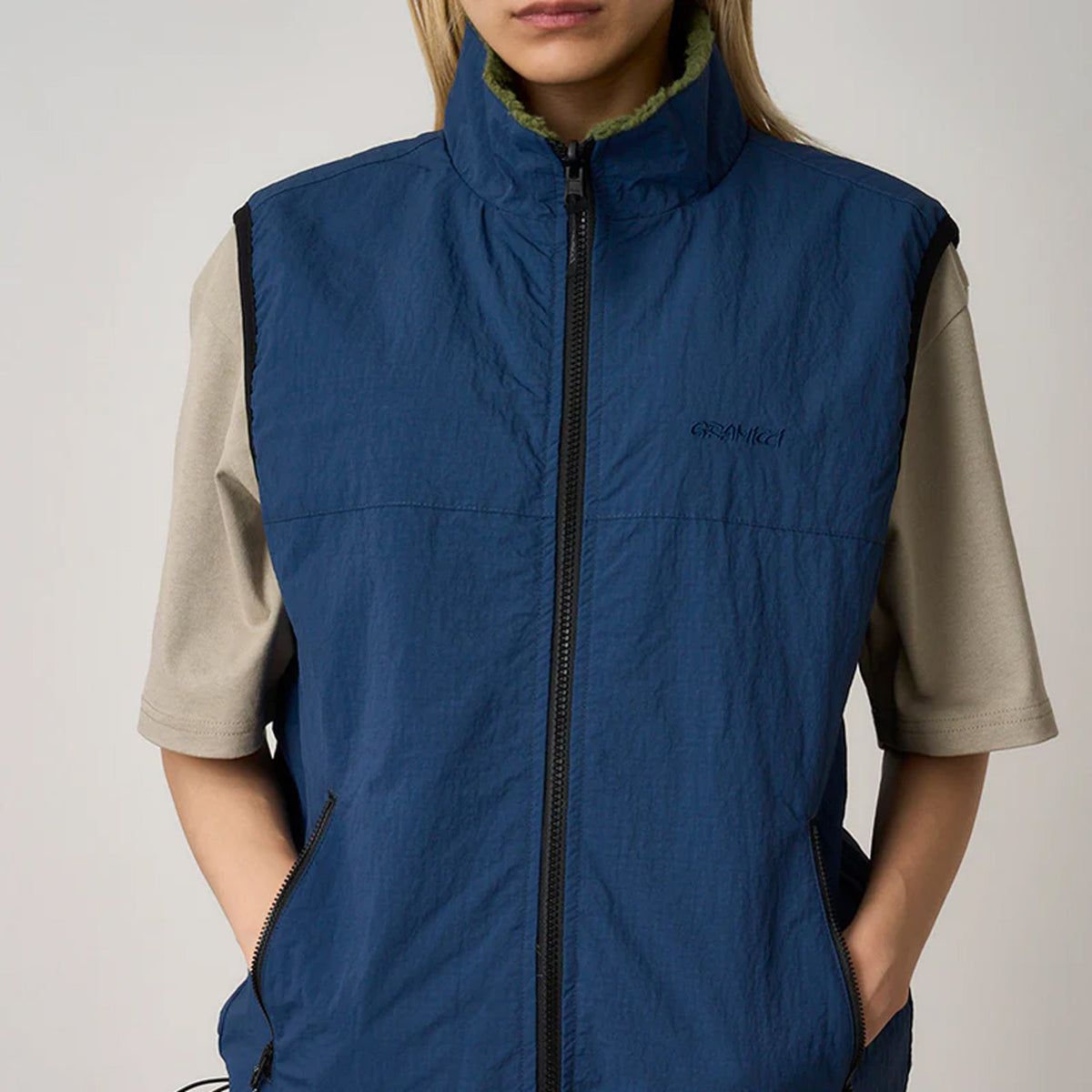 REVERSIVLE SHERPA VEST(OLIVE/DUSTY NAVY)