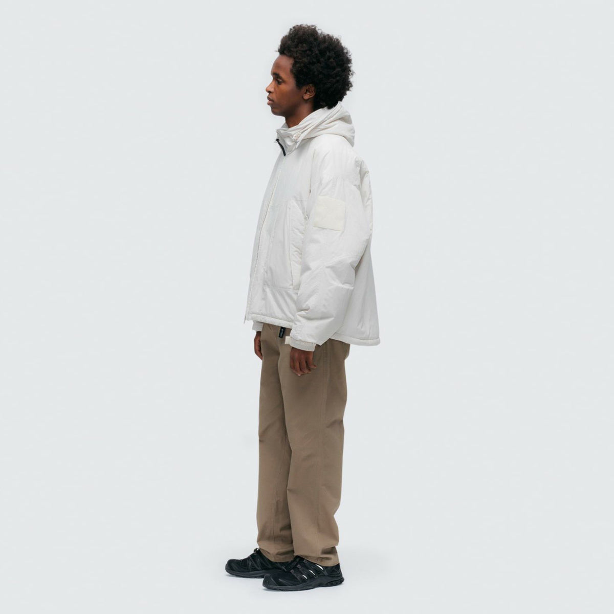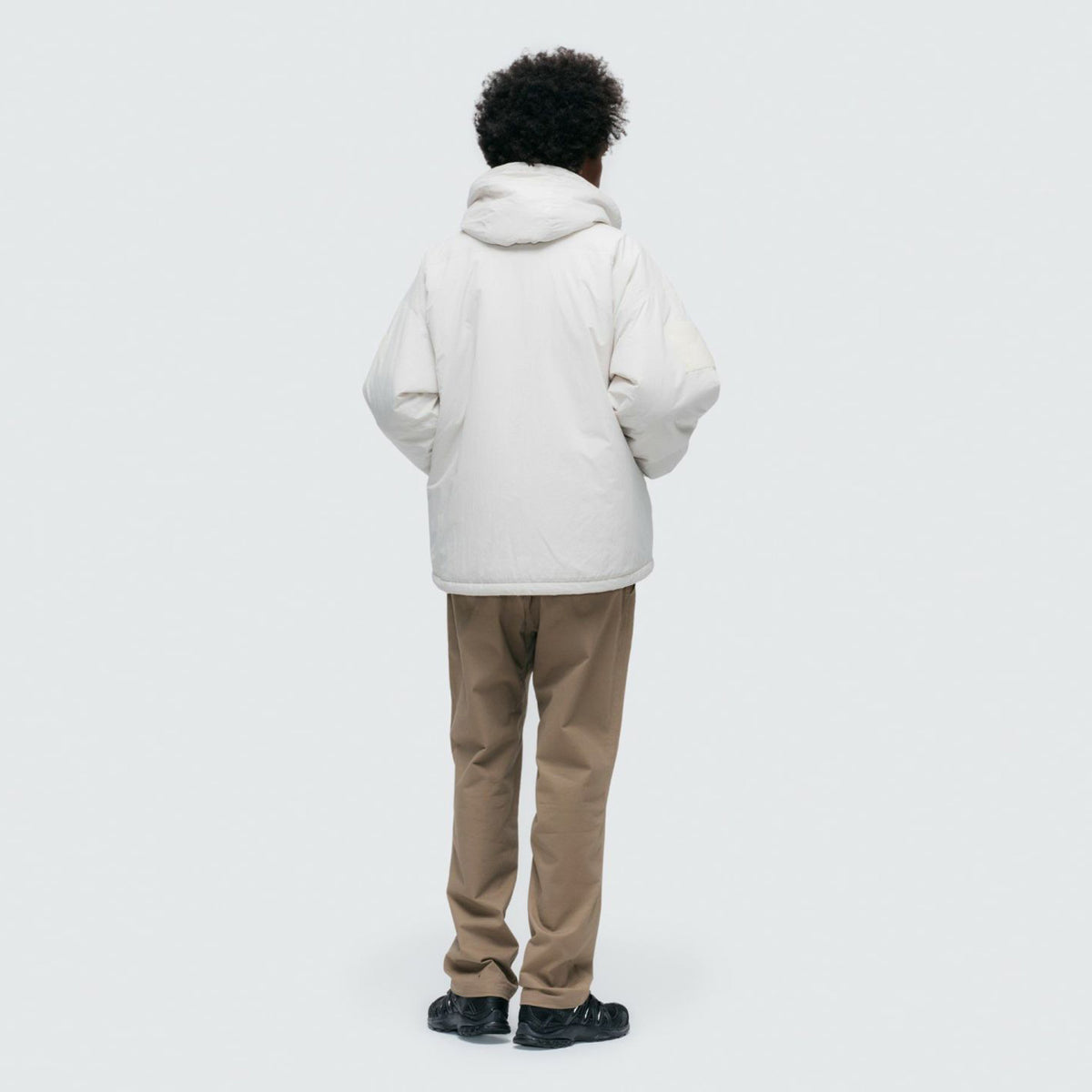 近年の日本の気候や、レイヤードし易さ、収納性に配慮し中綿量を調整することで、オーバーサイズながら膨らみすぎないスッキリしたシルエット。