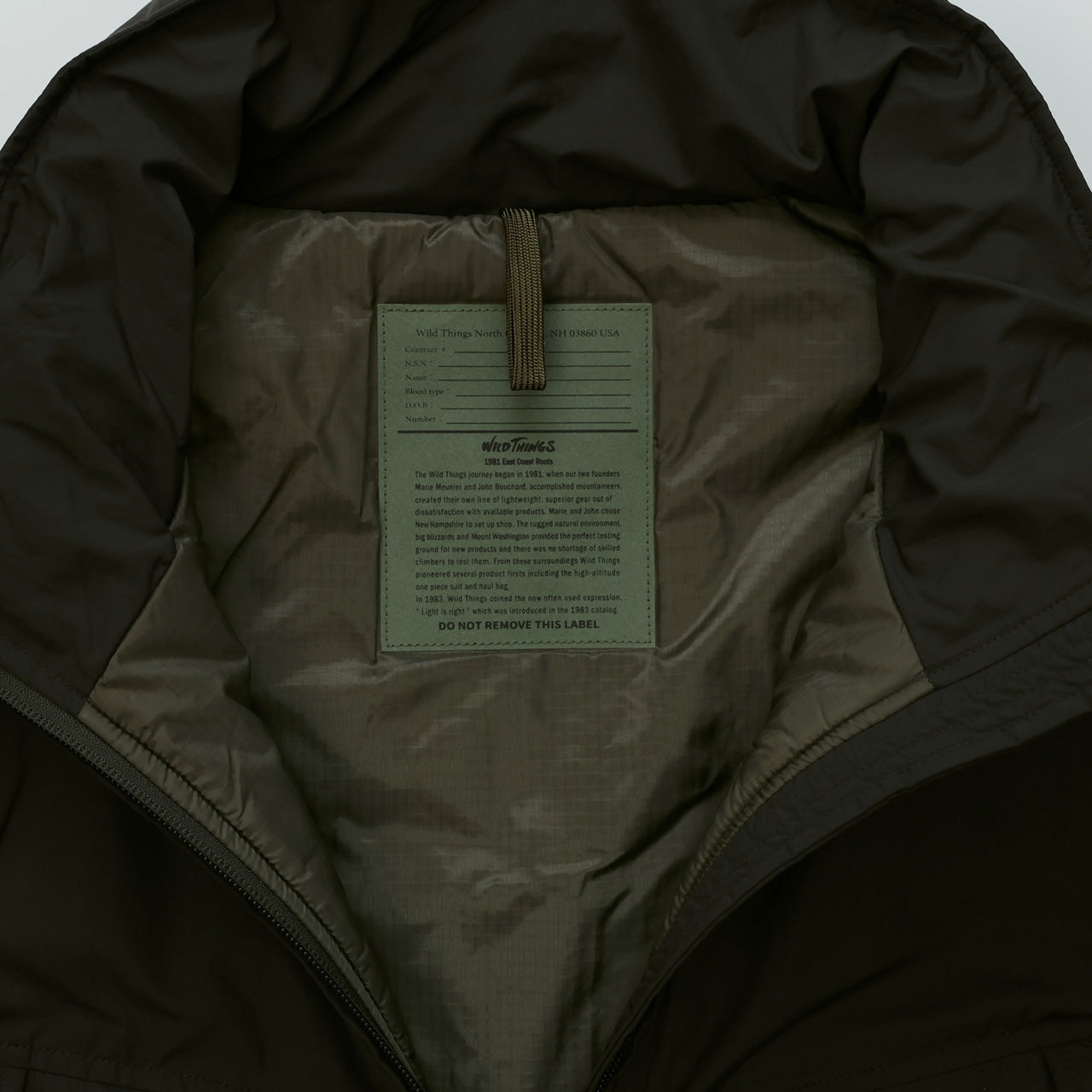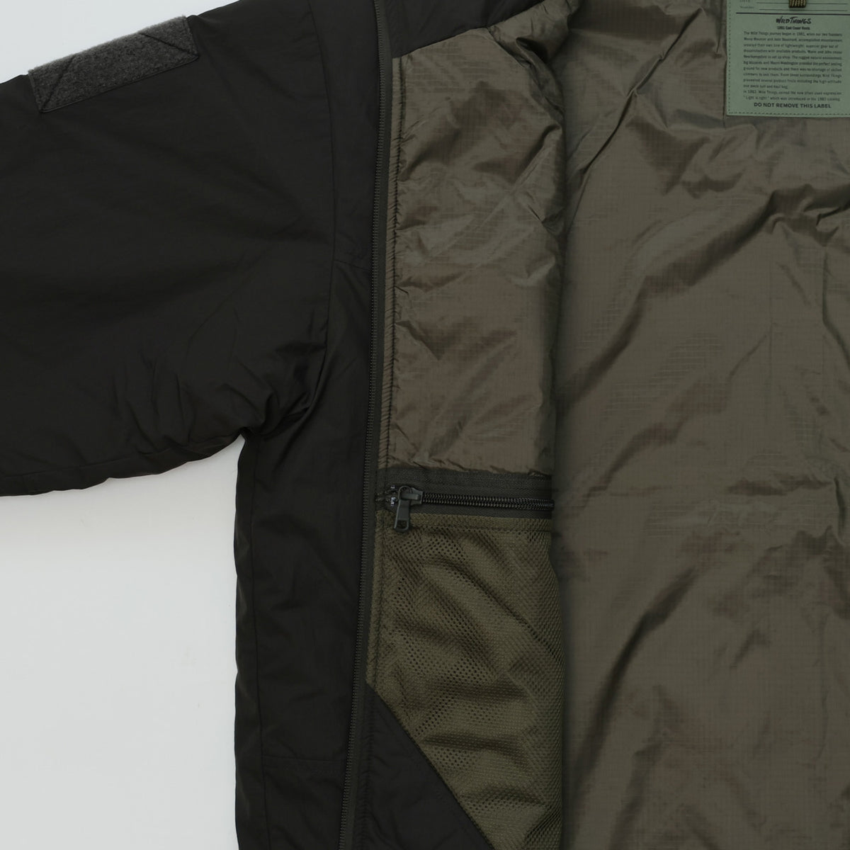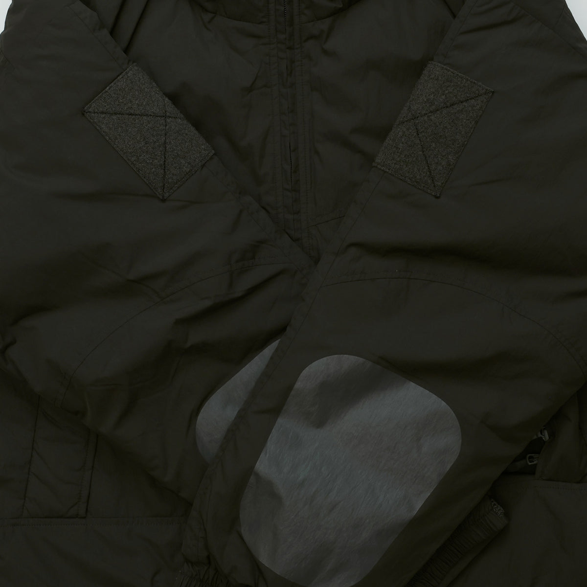 表地に非フッ素高耐久撥水加工CZEREXを施したハリ感のあるCORDURA NYLON、中綿にCLIMASHIELD COMBATを使用。