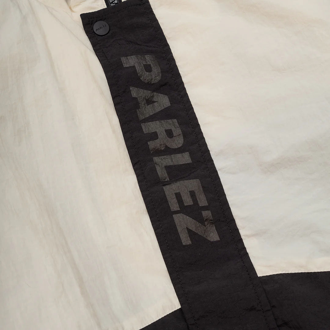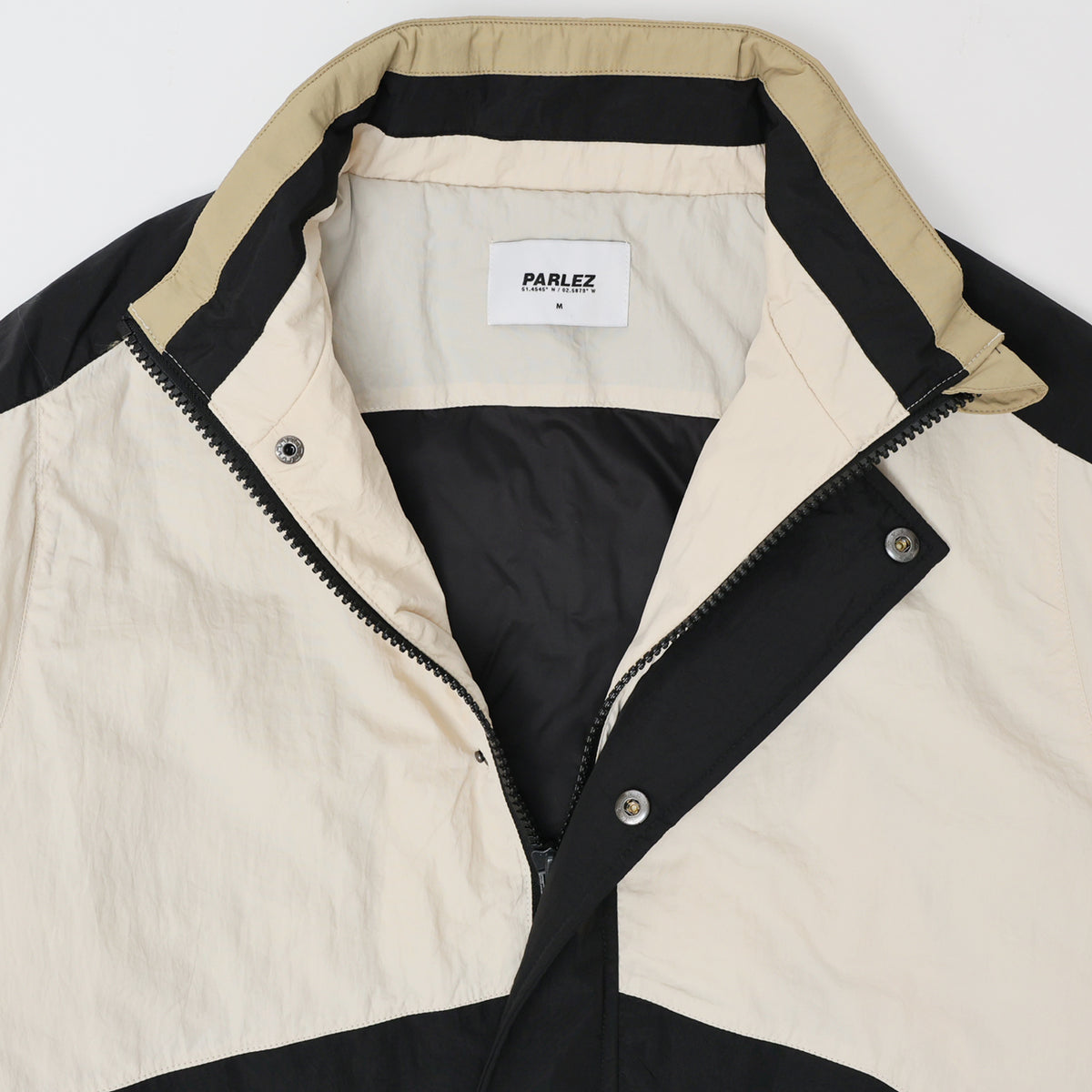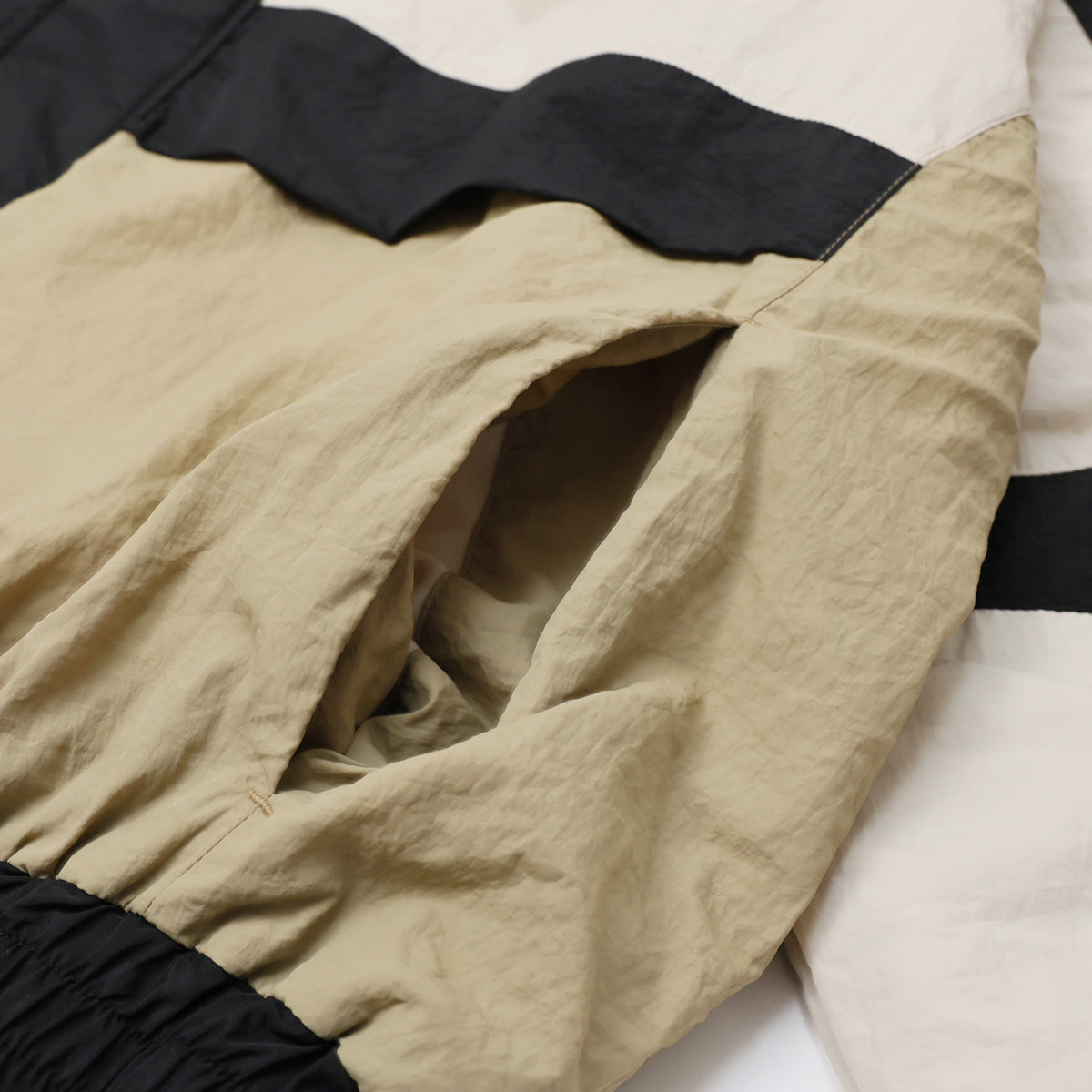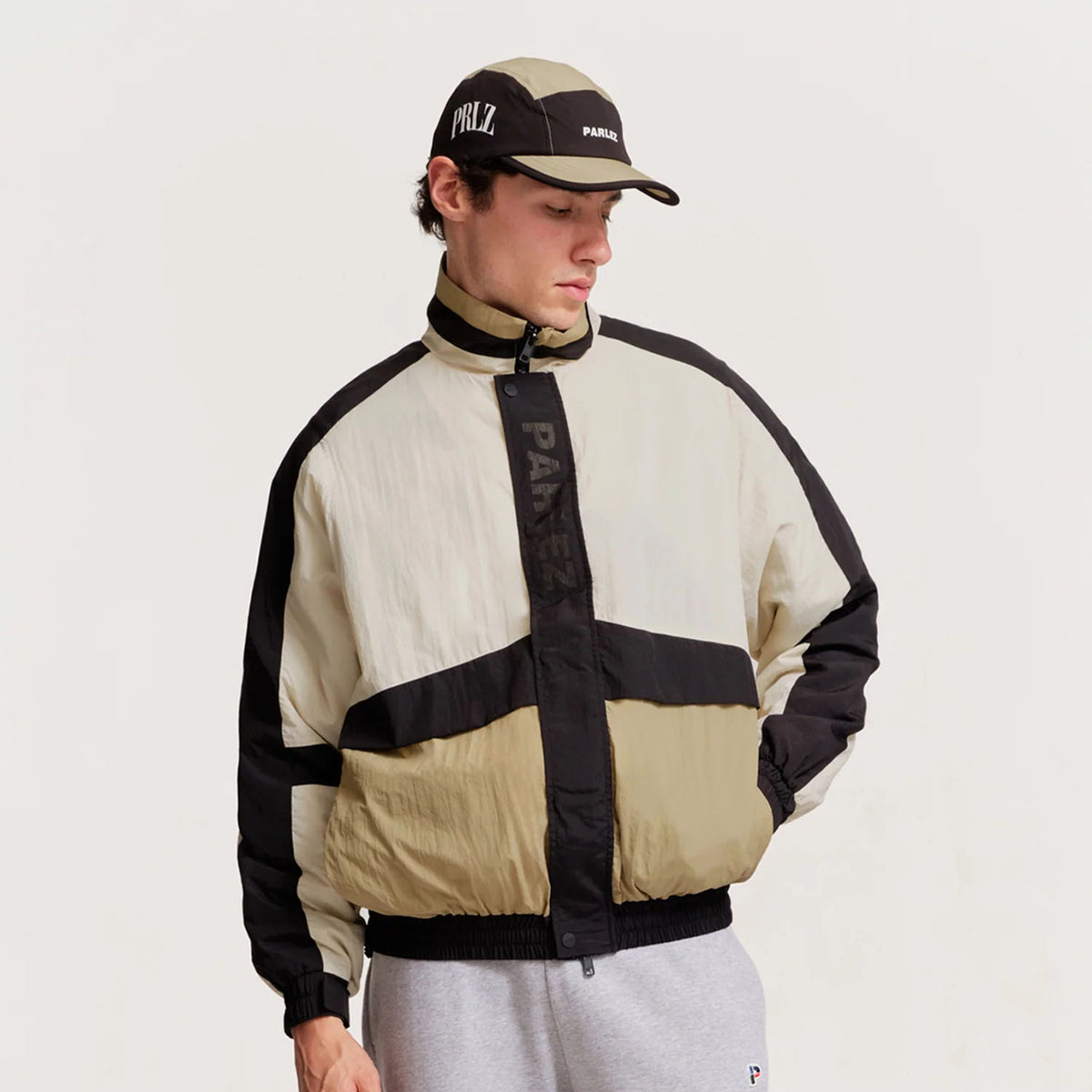 シェル素材のスラロームジャケット。100%リサイクルナイロンにエコフィルパディングを施した、軽やかな中綿入りのトラックジャケット。スナップボタン留めのプラケット付きツーウェイジップ、カラーブロックのパネル、ファネルネック、調節可能なバンジーコードヘムが特徴。背面とフロントのジッププラケットにはブランドロゴがプリントされています。